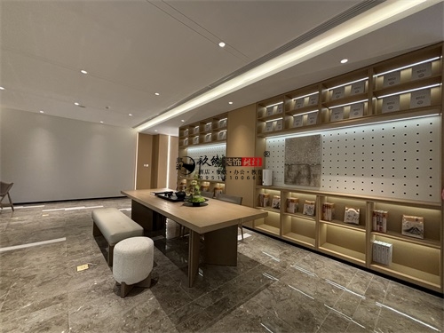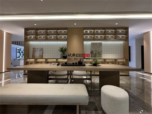 今天分享的是中卫望远民生售楼部展厅装修设计实景,该家售楼部展厅装修设计方面主打的是轻奢自然风,精准打造出一个具有魅力的展厅形象。空间布局上,成品完美体现了售楼部展厅装修设计的功能优先级:靠窗区域做了“观景式洽谈区”,长条形卡座+小边几的组合,既利用窗外绿植弱化了商业属性,又通过嵌入式灯带营造出“家的松弛感”——这是银川装修公司镹臻常用的“场景代入法”,让客户在洽谈时提前感知“未来生活场景”。同时,分散式的座椅布局兼顾了私密性,避免了传统售楼部的拥挤感,也符合银川高端售楼部“低密度、舒适化”的设计趋势(如阅海湾壹号展厅的松弛感营造)。